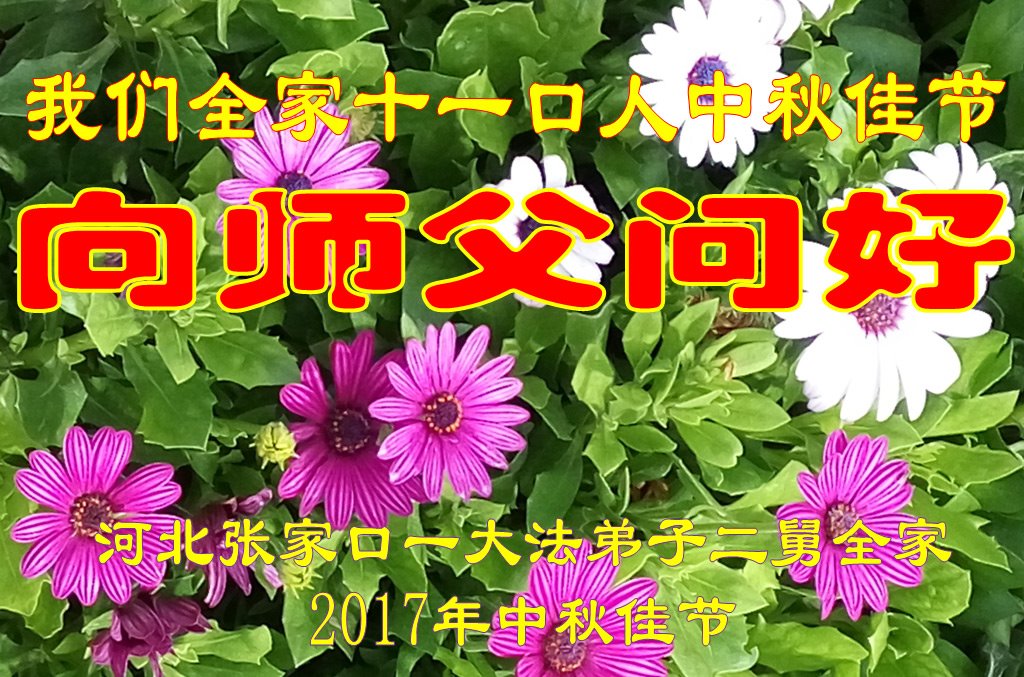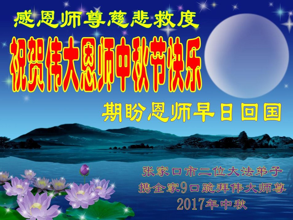 河北省張家口二位大法弟子攜全家七口恭賀偉大師尊中秋節快樂!