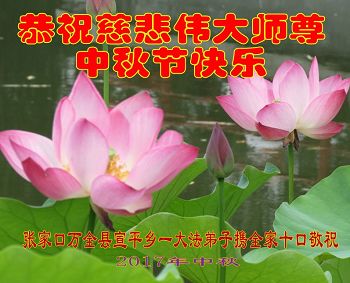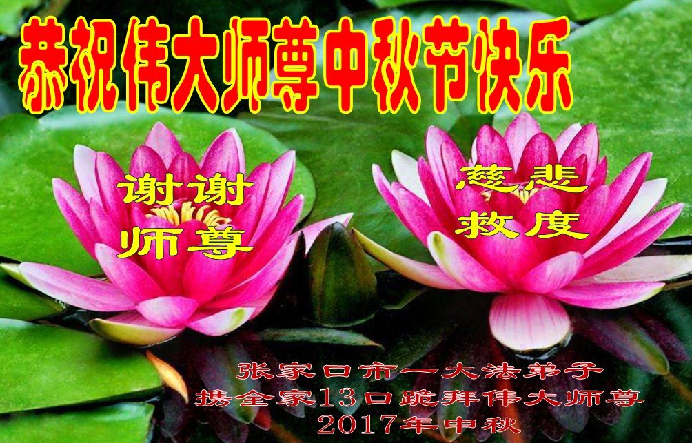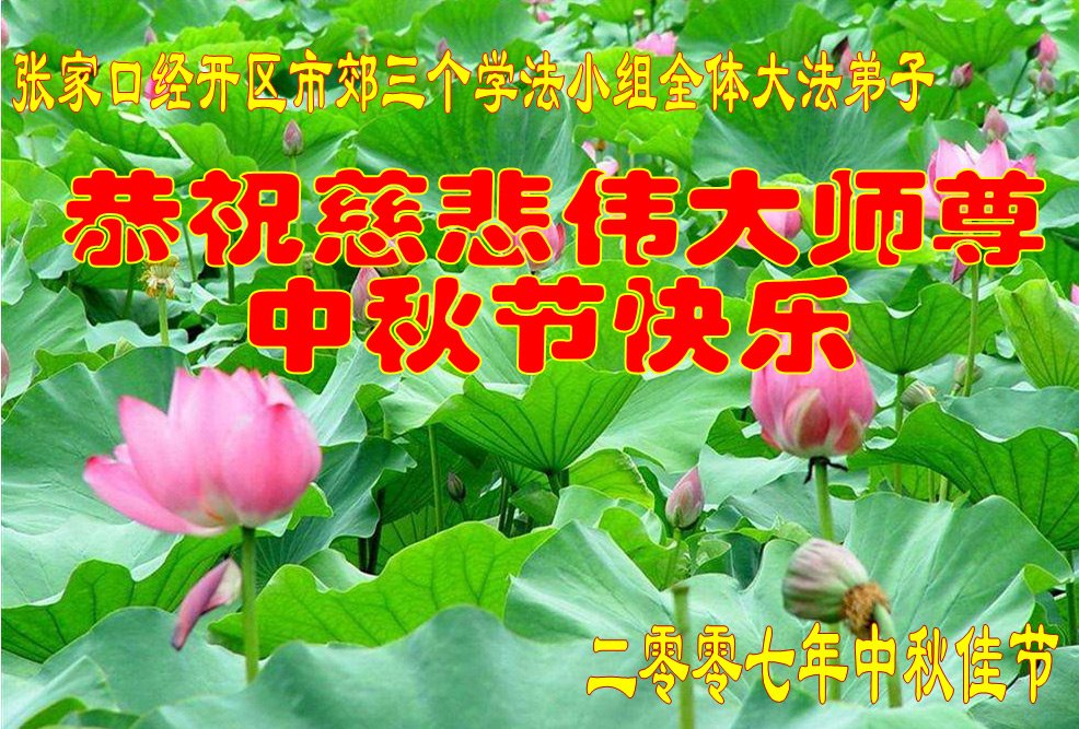 河北張家口經開市三個學法小組全體大法弟子恭祝慈悲偉大師尊中秋節快樂!