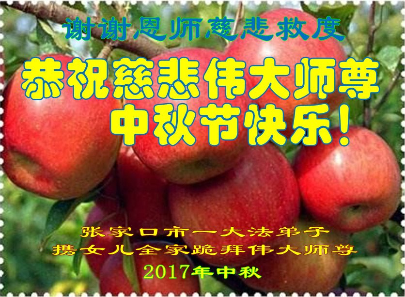 河北省張家口一大法弟子攜女兒全家謝謝恩師慈悲救度!恭祝慈悲偉大師尊中秋節快樂!