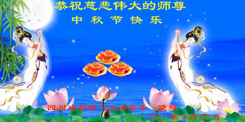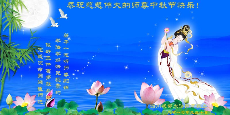 四川成都大法弟子恭祝慈悲偉大的師尊中秋節快樂!