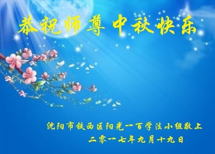 遼寧省瀋陽市鐵西區陽光一百學法小組恭祝師尊中秋快樂!