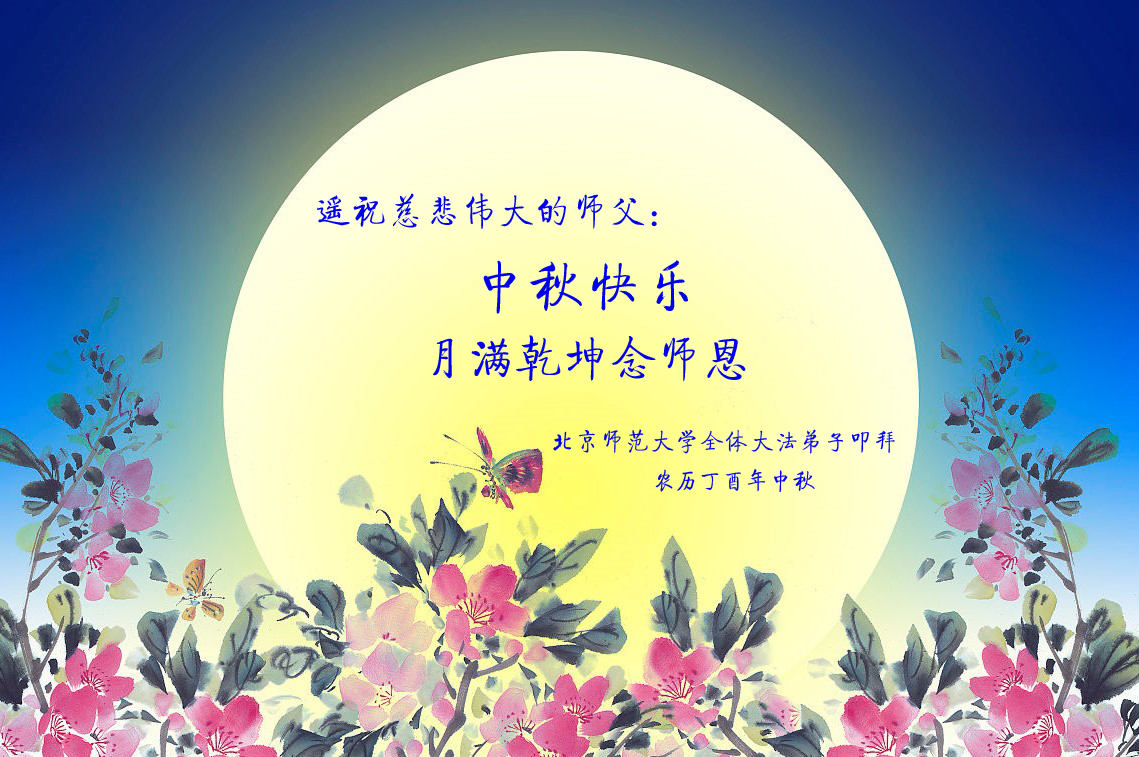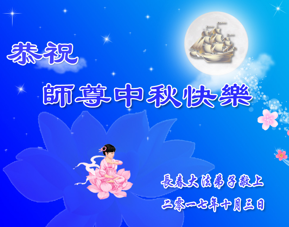 藉此中秋佳節之際弟子們向慈悲偉大的師尊至於最美好的祝願與最真誠的問候!在這紅塵濁世,是您傳高德大法使我們不再墮落,沉淪,用真、善、忍法理洗淨我們的心靈。在病痛煎熬中,是您的洪大慈悲和無邊法力給予我們健康的身體使我們晦暗的人生柳暗花明,重現生機與快樂。千言萬語也無法表達弟子們對師尊感恩與思念。弟子們唯有精進實修,努力修好自己多救人,不負師尊慈悲苦度和浩蕩洪恩!不負眾生億萬年的期盼!