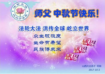 河北邢台市橋西區一大法弟子全家恭祝師尊中秋快樂!