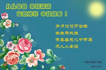 值此2017年中秋佳節來臨之際,張掖大法弟子向慈悲偉大的師尊致以衷心的問候,敬祝師父中秋快樂!