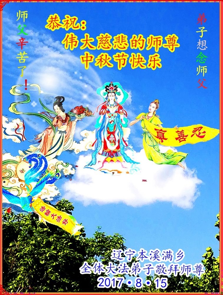 遼寧本溪滿鄉全體大法弟子敬拜師尊!恭祝慈悲偉大的師尊2017中秋節快樂!