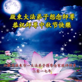 江蘇省連雲港市一大法弟子攜全家跪拜師尊:恭祝慈悲偉大的師尊中秋節快樂!