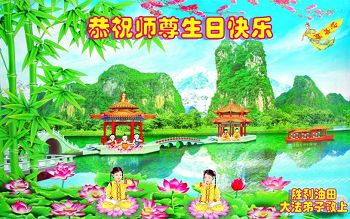 在這全世界喜慶的時刻,我們四人老年學法小組祝師尊生日快樂!弟子無以為報,只能精進實修,踏踏實實的做好三件事,讓師尊少一份操心,多一份欣慰,早一天隨師返回真正的家園。再次叩拜師尊!