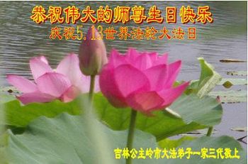 吉林省四平市公主嶺市大法弟子一家三代恭祝偉大的師尊生日快樂!慶祝世界法輪大法日!