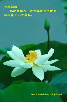 乾坤茫茫,宇宙再造,我有幸今生得到了大法,這是億萬年的等待,只為了最後的時刻同化法,助師世間行。弟子的父母因了解了大法真相而得到福報,生命得到了延續,家裏也曾盛開了優曇婆羅花,這一切都是師父的賜予,弟子並代家人感恩師父的慈悲苦度,弟子一定抓緊時間更好的做好三件事,圓滿隨師還。恭祝偉大慈悲的師尊生日快樂!普天同慶世界法輪大法日。