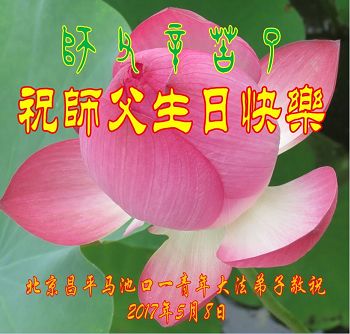 在慈悲偉大的師父生日到來之際,我祝師父生日快樂!感謝師父的慈悲苦度於危難,我一定與同修配合好,共同精進。