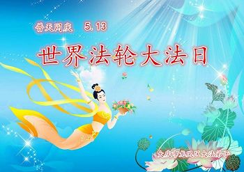 五月十三日是世界法輪大法日與恩師洪傳大法二十五週年的紀念日,同時又是我們的偉大恩師華誕,在這個大恩大德的歡慶節日裏,弟子及家人恭祝偉大慈悲的恩師生日快樂!弟子心裏明白:弟子就是用千言萬語也道不盡恩師對弟子與家人的洪恩浩蕩!恩師傳法已二十五週年,我在大法中修煉也快二十五年了,修的跟頭把式的,摔倒了師父把我扶起來,歸正,跑步跟上恩師的正法進程,總怕被落下,在恩師的慈悲呵護下,弟子努力做好三件事。與本地同修互相幫助,整體配合,堅定的信師信法!知道恩師給予我們一定是最好的,恩師叫我們橫心去修煉,我就是憑著這顆橫心跟著恩師闖過了一道道難關,走到今天,真善忍宇宙大法的法理已在我心深深的紮下根,誰也別想動,誰也動不了!