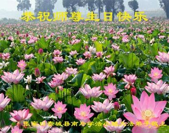 河北蔚縣一學法組大法弟子恭祝慈悲偉大的師尊生日快樂!