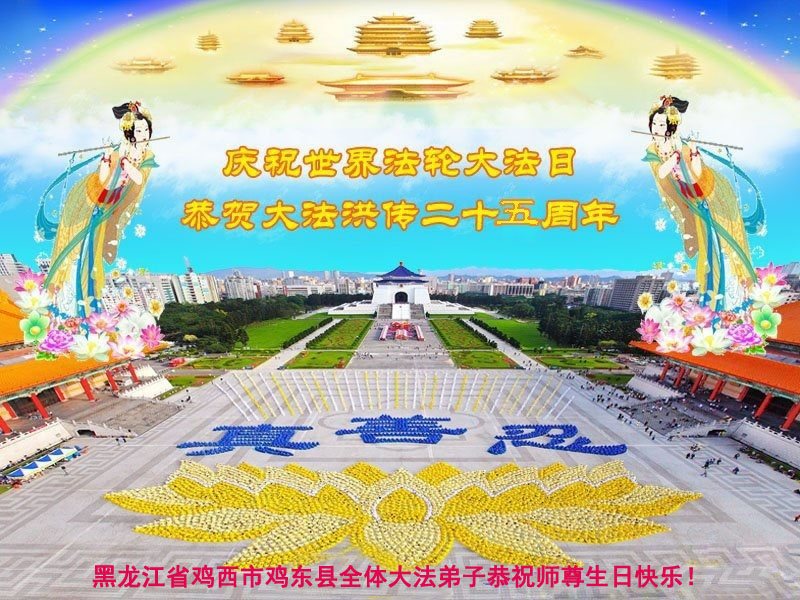 黑龍江省密山市一大法弟子祝師尊生日快樂!慶祝師尊傳法二十五週年,在這二十五年裏,師尊把我從道德敗壞中撈起,領我走上修煉的路,上了法船,可是過一段時間就忘了自己是修煉人,就隨常人而去,沒有嚴格要求自己,愧對師尊對我的苦度。