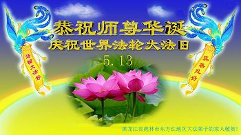 恭祝師尊生日快樂!祝賀5、13世界法輪大法日,普天同慶,同祝佛法洪傳二十五週年日。