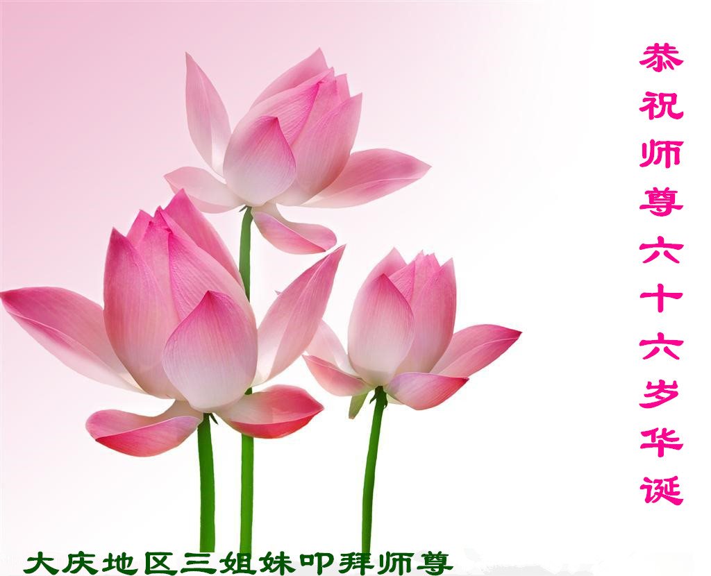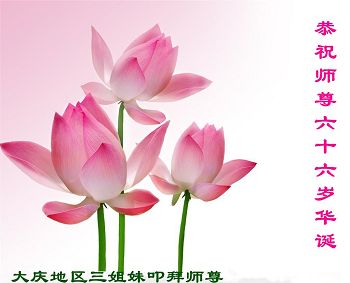 黑龍江省大慶三姐妹大法弟子恭祝師尊生日快樂!