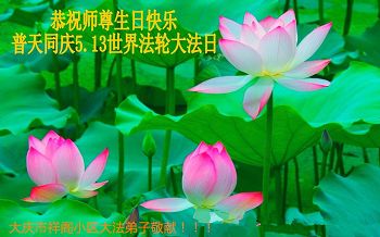 黑龍江大慶一大法弟子恭祝慈悲偉大的師尊生日快樂!恭賀法輪大法日!