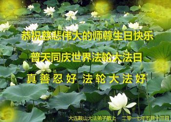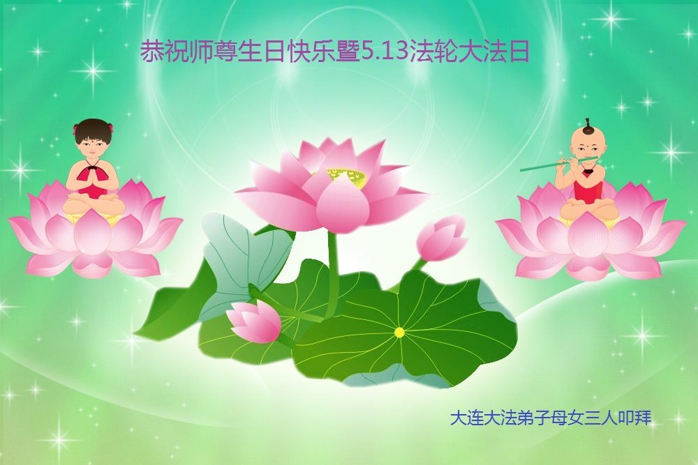 在5.13這個普天同慶的日子來臨之際,大連大法弟子恭賀法輪大法日!恭祝偉大慈悲的師父生日快樂!萬分感謝師父救度之恩!敬請師父放心,我們時刻會記住自己是一名大法弟子,做好三件事。