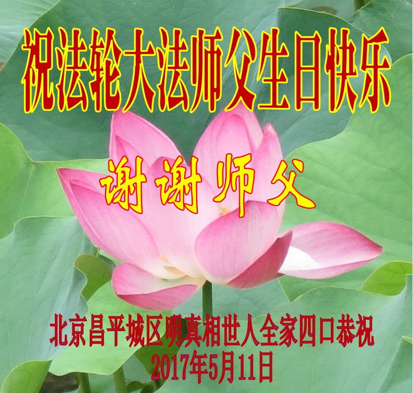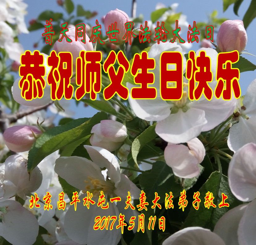 北京昌平水屯一夫妻大法弟子恭祝師父生日快樂!普天同慶世界法輪大法日!謝謝師尊慈悲苦度!師父辛苦了!