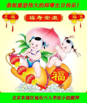 我們是北京豐台學法小組的弟子,在師尊六十六歲華誕到來之際,在北京叩拜、遙祝師尊!千言萬語難以表達我們此刻的心情,正法已到最後的時刻,深知師尊為弟子們操碎了心,慈愛的關注著我們、加持著我們,弟子們無以為報,只有精進實修,不負師恩!