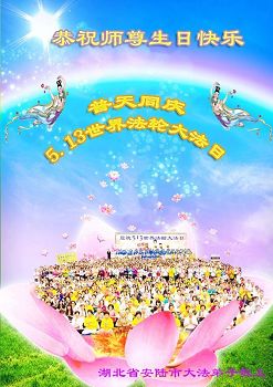 湖北十堰大法弟子恭祝師尊生日快樂!祈盼師尊早日回國
