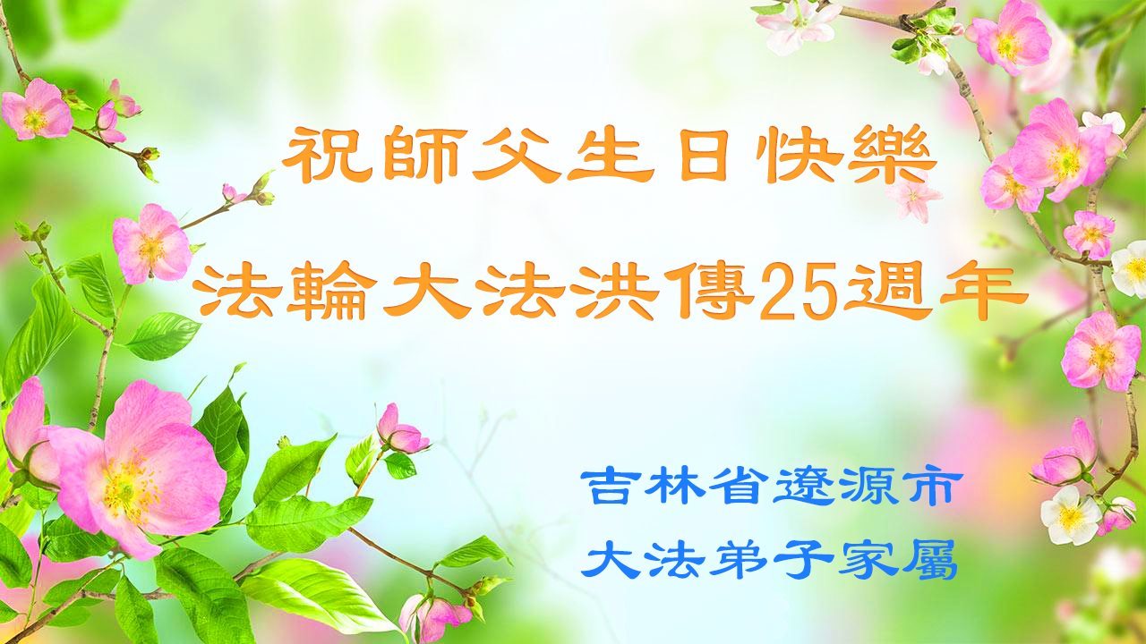吉林省遼源市大法弟子家屬祝師父生日快樂!法輪大法洪傳25週年。