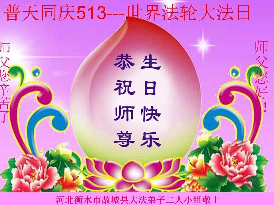 河北衡水市大法弟子學法小組恭祝師父生日快樂!同賀513世界法輪大法日!
