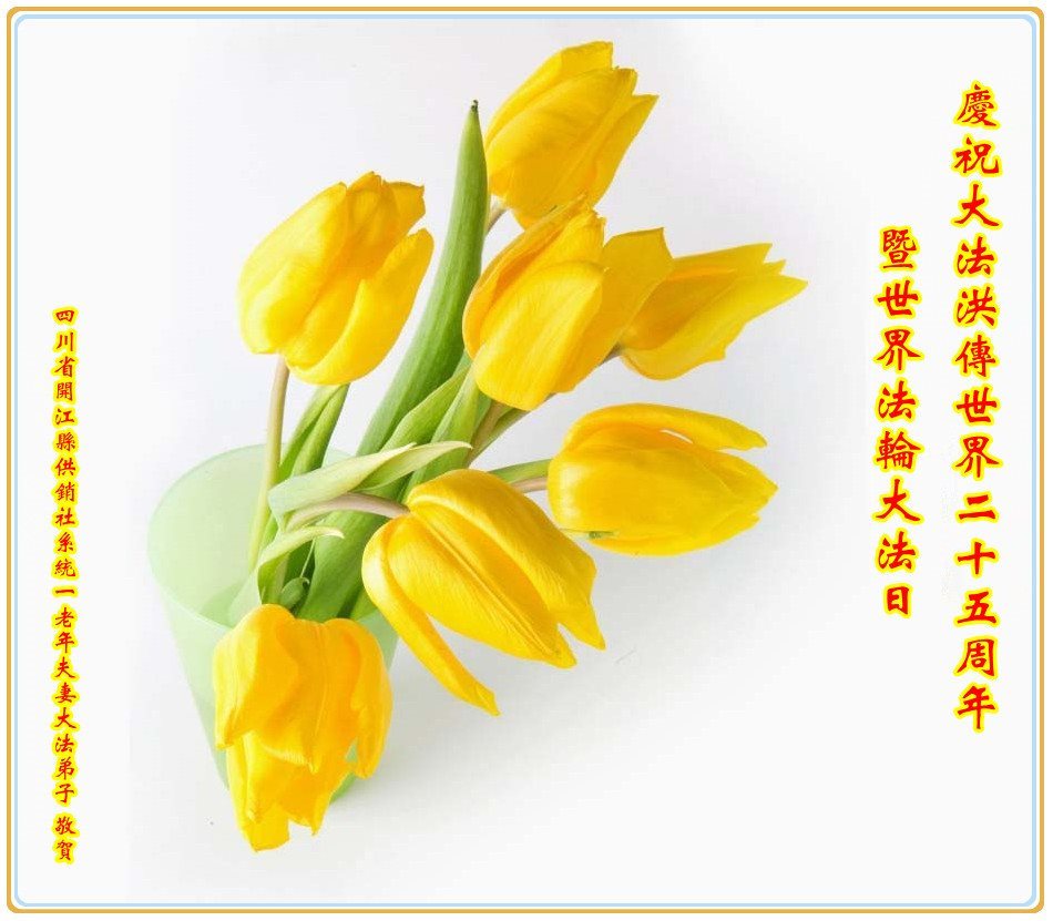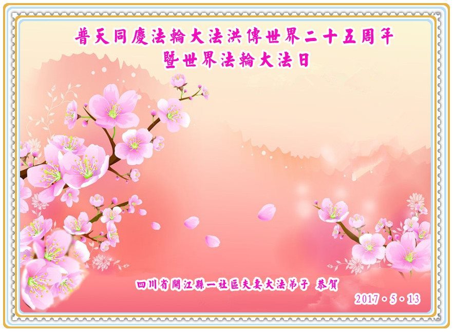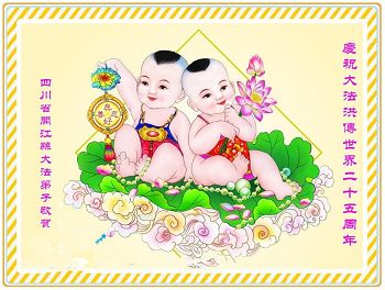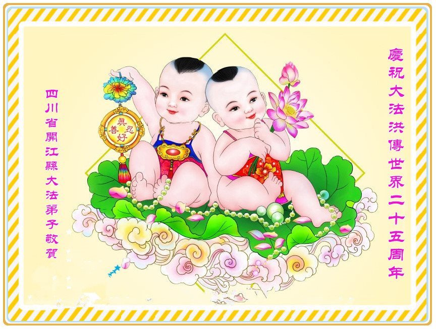 四川省達州市開江縣一社區夫妻大法弟子普天同慶法輪大法洪傳世界二十五週年!