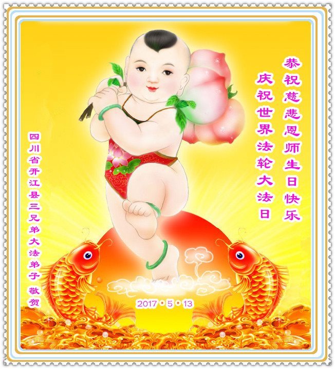 四川成都市一大法弟子全家恭祝師尊生日快樂!