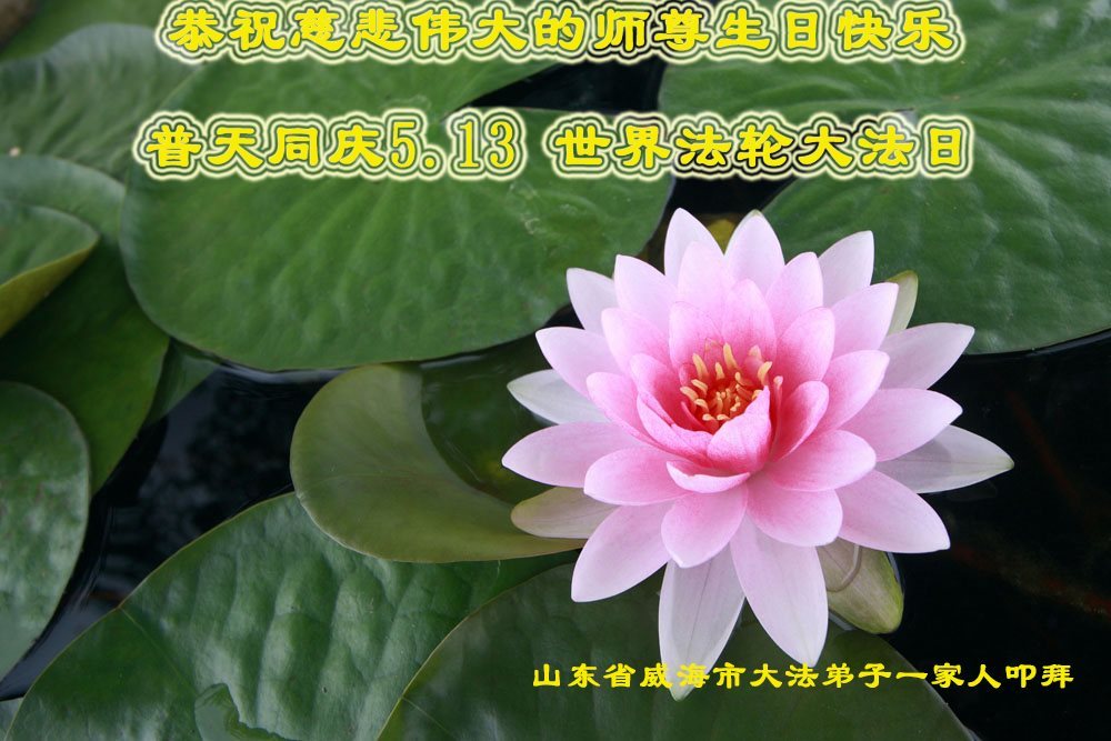 山東省威海市大法弟子一家人恭祝慈悲偉大的師尊華誕暨世界法輪大法日!