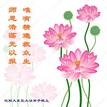 瀋陽大東一家六口大法弟子及多名其他大法弟子恭賀世界法輪大法日!師恩浩蕩無以為報,弟子唯有精進,在最後的路上救度更多眾生。