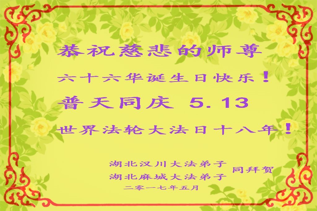 湖北省孝感市漢川市大法弟子和麻城大法弟子共祝師尊生日快樂!