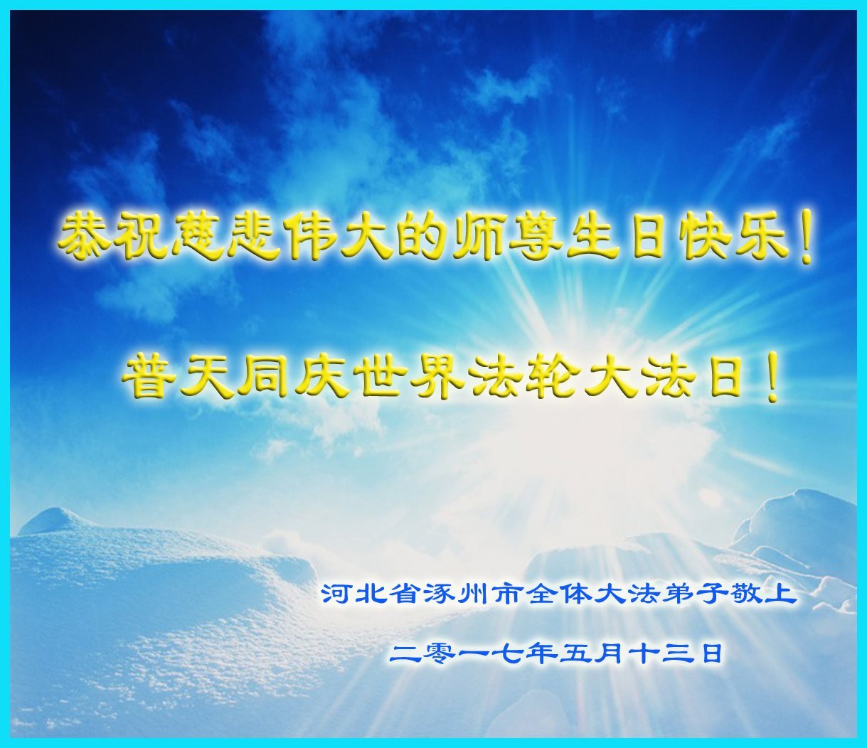 河北省保定市涿州市大法弟子恭祝慈悲偉大的師尊生日快樂!普天同慶法輪大法日!