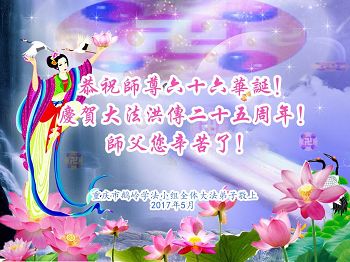 重慶市鵝嶺學法小組全體大法弟子恭祝師尊六十六華誕!慶賀大法洪傳二十五週年!師父您辛苦了!