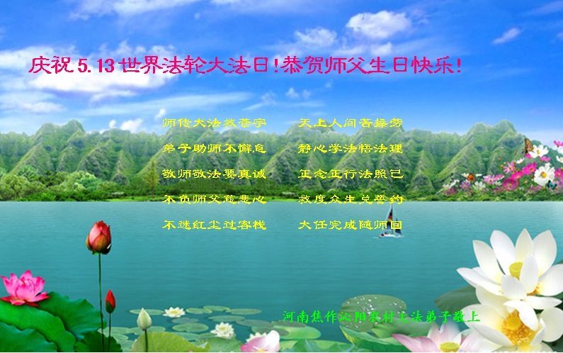 河南省焦作市沁陽市一大法弟子恭祝世界法輪大法日!