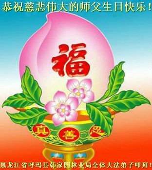 黑龍江省大興安嶺地區呼瑪縣韓家園林業局全體大法弟子恭祝師父生日快樂!恭賀法輪大法日!