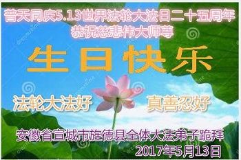 安徽省宣城市旌德縣全體大法弟子恭祝師尊生日快樂!