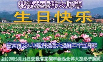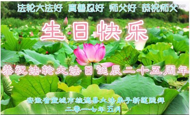 安徽省宣城市旌德縣大法弟子新蓮恭祝師父生日快樂!