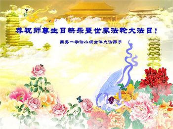 陝西西安一學法小組全體大法弟子恭祝師父華誕暨慶祝世界法輪大法日!