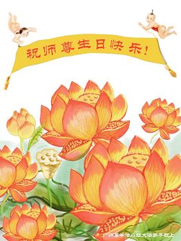 我們是一起學大法的三位大法弟子,在今天這個神聖的日子,千言萬語一句話:祝慈悲的師父生日快樂!