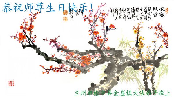 甘肅蘭州榆中金崖鎮大法弟子恭祝師尊生日快樂!