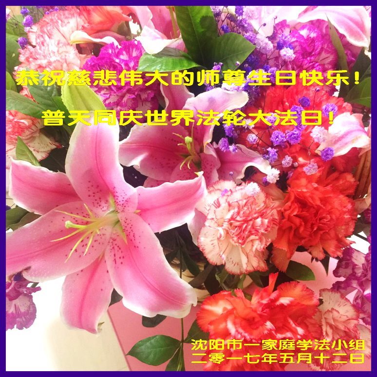 遼寧瀋陽市大法弟子一學法組恭祝慈悲偉大的師尊生日快樂!