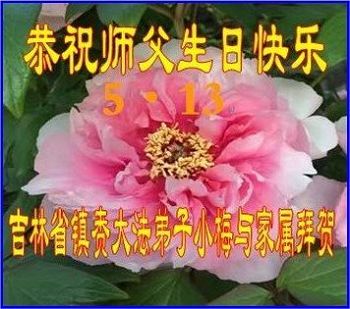 在這普天同慶之日,我們全家恭祝師尊生日快樂!我們深感時間緊迫,我們一定和身邊同修配合好,珍惜大家緣份 ,多救人,讓師尊少一分操勞,多一些寬慰!