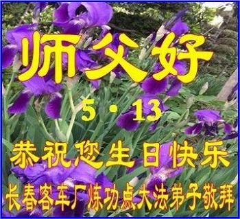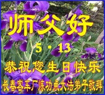 吉林省長春客車廠煉功點大法弟子師父好!恭祝您生日快樂!