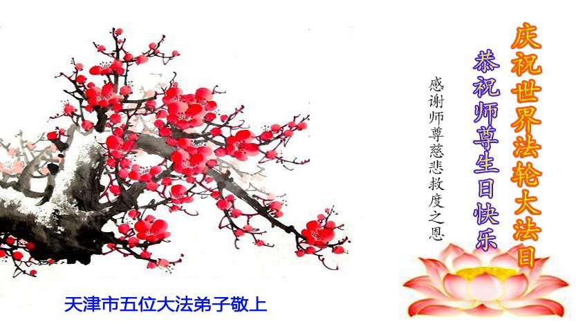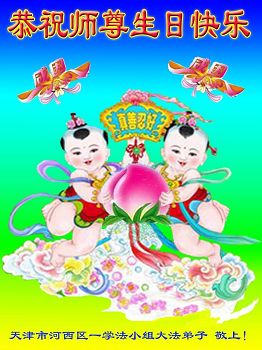 天津市河西區一學法小組全體大法弟子恭祝師尊生日快樂!師父好!師父辛苦了!