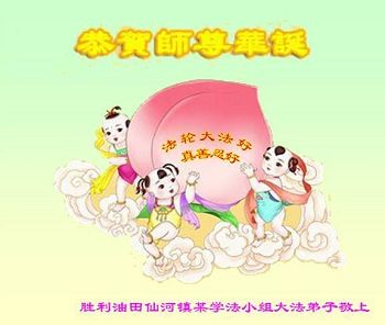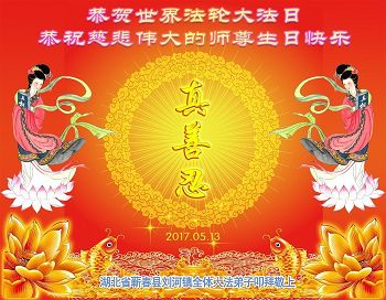 湖北省蘄春縣劉河鎮全體大法弟子恭祝師尊生日快樂!