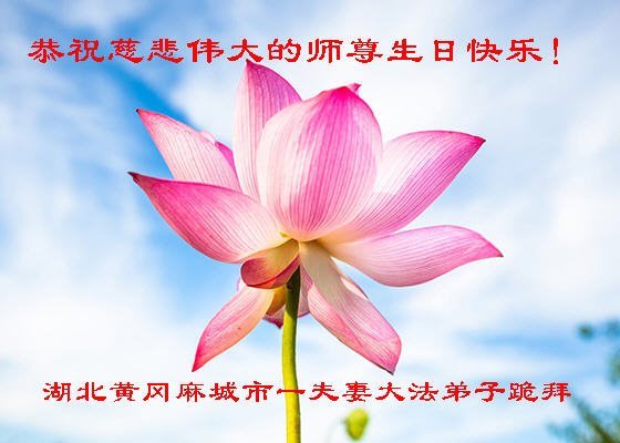 湖北黃岡麻城市夫妻大法弟子恭祝慈悲偉大的師尊生日快樂!