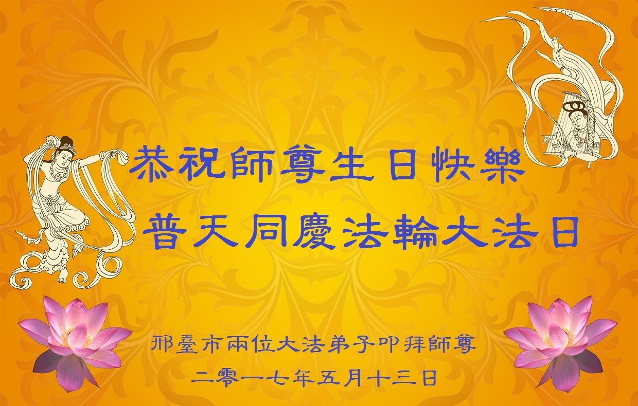 河北省邢台市兩位大法弟子恭祝師尊生日快樂!