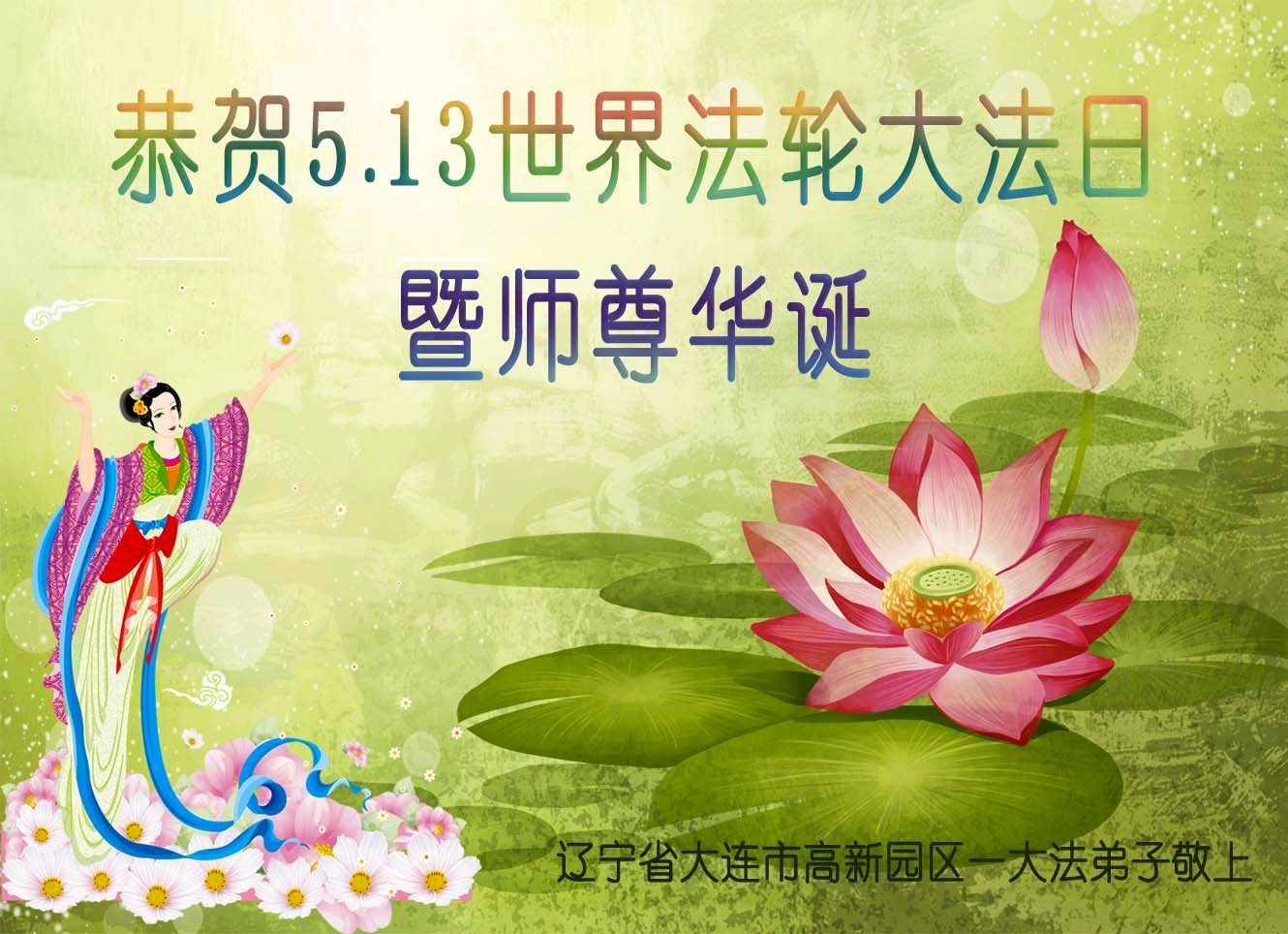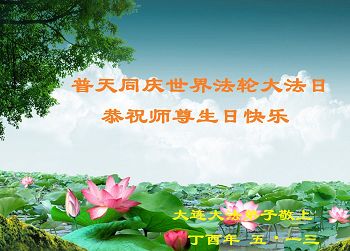 遼寧大連市大法弟子恭祝師父生日快樂!普天同慶世界法輪大法日!