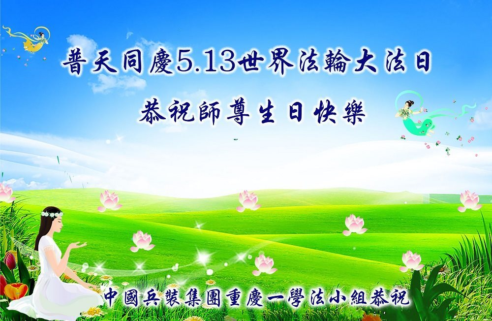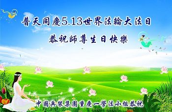 中國兵裝集團重慶一學法小組大法弟子恭賀世界法輪大法日!