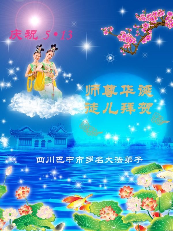 四川巴中市多名大法弟子恭祝慈悲偉大師父生日快樂!慶祝5.13世界法輪大法日!